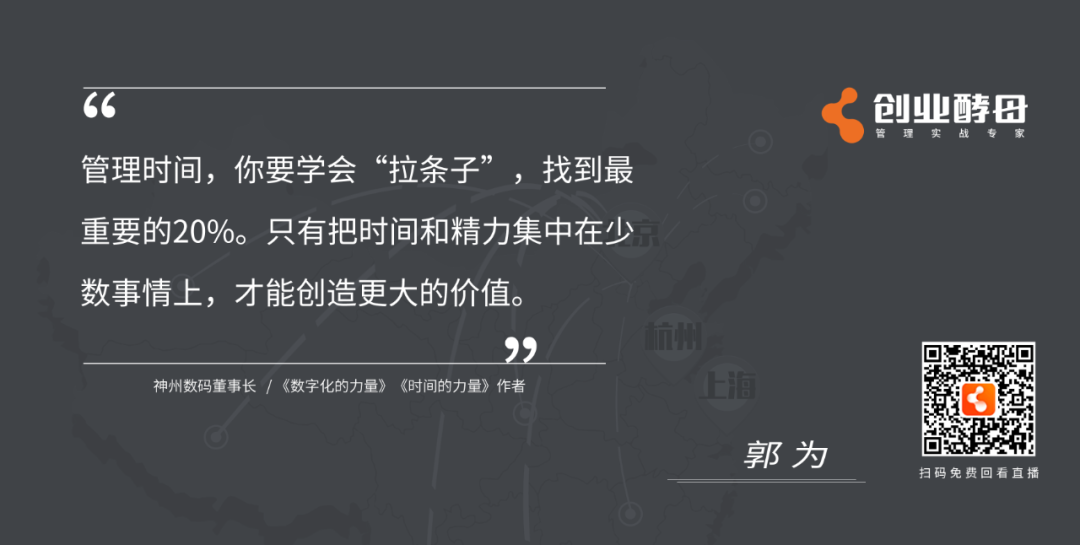 导语:时间管理,之于企业,之于人生有什么意义?如何做好时间管理?如何把时间花在最重要的战略管理上?如何以时间管理打造组织领导力?……在5月16日,米兰电竞与创业酵母联合举办的《时间的力量——企业时间管理实践与思考》直播对谈中,神州信息董事长、《时间的力量》作者郭为与创业酵母创始人张丽俊围绕“时间管理、战略管理、组织变革、团队管理、领导力”等话题深度探讨,以下为直播内容精选。